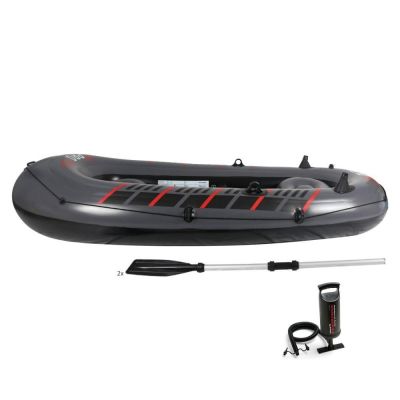 Η συγκεκριμένη βάρκα είναι σχεδιασμένη για 2 ενηλίκους και 1 παιδί. Κατασκευασμένη με PVC βαρέως τύπου, ανθεκτικό στη διάτρηση για άνεση και ανθεκτικότητα. Διαθέτει επιπλέον νάιλον σχοινί λαβής περιμετρικά για ασφάλεια, καθώς και 2 ενσωματωμένες υποδοχές κουπιών με 2 κουπιά, 2 φουσκωτά μαξιλάρια, 2 υποδοχές για καλάμι ψαρέματος, τρόμπα χειρός και κάλυμμα επισκευής.
