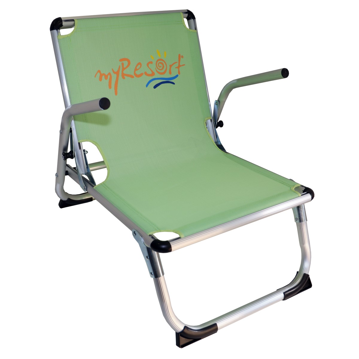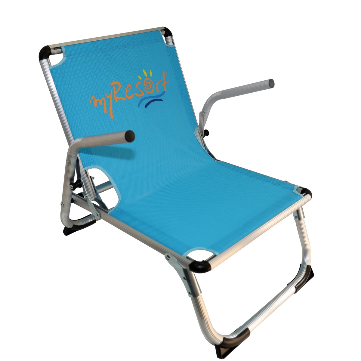 Καρέκλα παραλίας αλουμινίου, με μπράτσα και ύφασμα text διάτρητο.