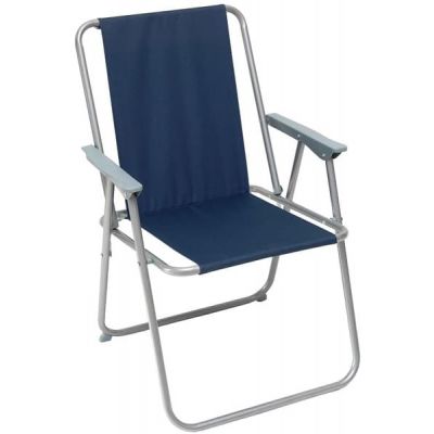 Μεταλλική καρέκλα, ιδανική για το κάμπινγκ και την παραλία. Είναι άνετη, με μπράτσα και διαθέτει μπλε ύφασμα Polyester 600D.