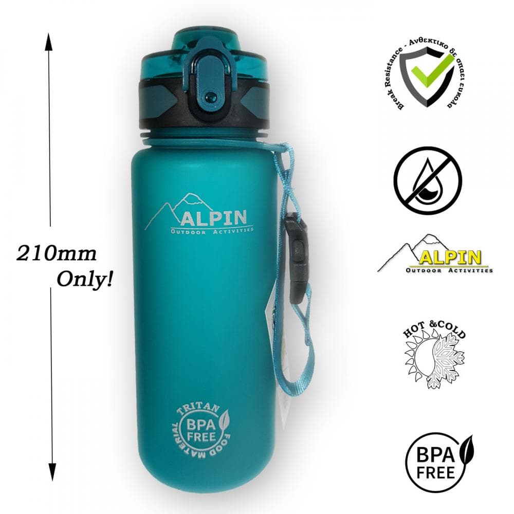 Το παγούρι της Alpin διαθέτει καπάκι ασφαλές, χωρίς διαρροές, με άνοιγμα με μια κίνηση. Είναι ιδανικό για το γυμναστήριο , για τις θήκες ποτηριών των αυτοκινήτων, και βέλτιστη επιλογή για το ποδήλατο. Αποτελεί την ιδανική επιλογή για μικρά παιδιά, αφού παρά το μεγάλη του χωρητικότητα είναι συμπαγές και εύκολο στη μεταφορά και τη χρηση . Είναι ασφαλές, μη τοξικό και χωράει στις περισσότερες τσάντες και τις θήκες ποτηριών.