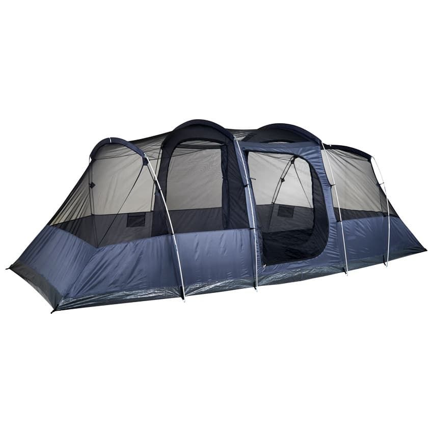 Ευρύχωρη, ευάερη σκηνή 8 ατόμων, ιδανική για οικογένειες. Τα υπνοδωμάτια είναι αντικρυστά για μεγαλύτερη ιδιωτικότητα.