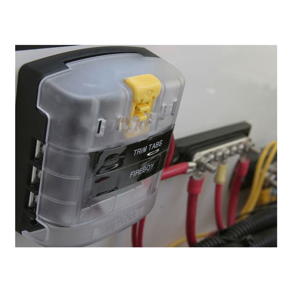 Το κάλυμμα έχει οπές κατάλληλες για να μπουν ετικέτες ενώ επίσης έχει και αποθηκευτικό χώρο για δύο ανταλλακτικές ασφάλειες.