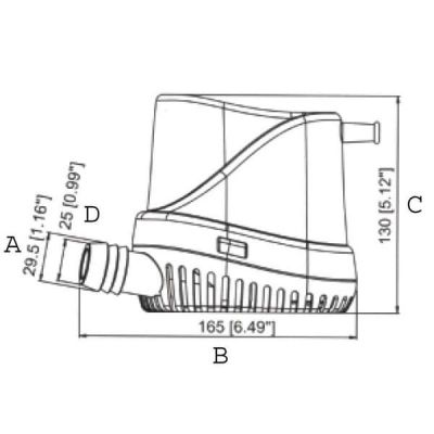 Διαστάσεις: A 29.5mm B 165mm C 130mm D 25mm