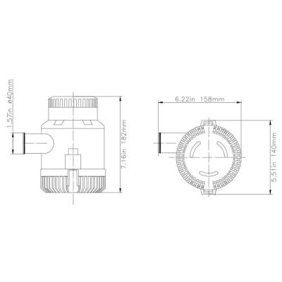 | 01810-300012 | 3000 GPH / 189 LPM | 12 V | 14 Α | 8 m | H182 x W158 mm | 40 mm |
