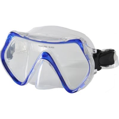 Μάσκα με μπλε πλαίσιο και εύκολα ρυθμιζόμενο λουράκι.