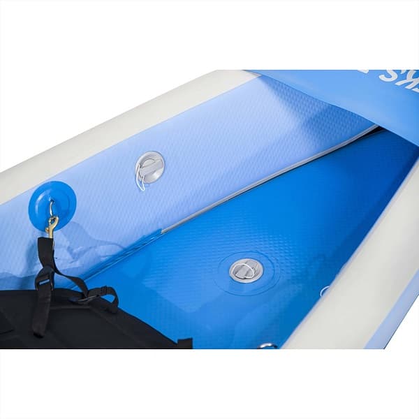 Είναι το πρώτο φουσκωτό καγιάκ που συνδυάζει φουσκωτό καγιάκ με dropstich πάτωμα και dropstitch μπαλόνια/τοιχώματα. Mε όμορφη σπορ γραμμή, ποιοτική κατασκευή, πολύ ανθεκτικό υλικό, Drop Stitch Πάτωμα και πλαινά, slide In Κεντρικό πτερύγιο αλλά και πλαστικό το μπρος και πίσω μέρος της καρίνας εντυπωσιάζει όχι μόνο με την πλευστότητα, ανθεκτικότητα, την ακαμψία αλλά και την ταχύτητά του. Επίσης το πλαστικό στο μπροστινό και το πίσω μέρος του σκάφους προστατευει από γδαρσίματα και γρατζουνιές κατά την επαφή με το έδαφος.